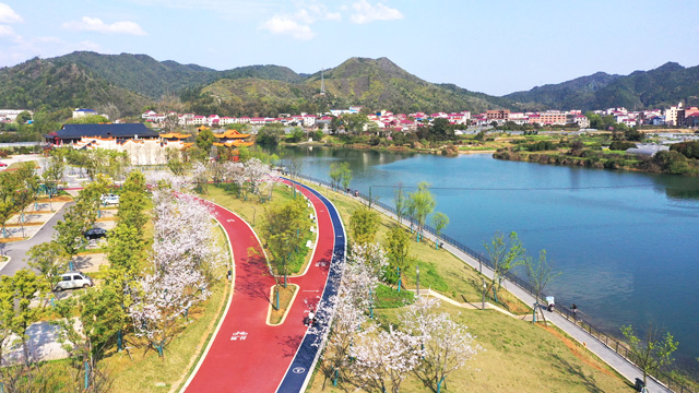 設計以創新為主題,結合景觀及城市防洪雙重功能;項目配有4.5米寬自行車道1.97公里,親水平臺2個、籃球場、網球場、門球場等多個體育健身場地,更有35畝近600株櫻花及大面積親水景觀,可以讓市民漫步留影;慢行步道、電瓶車道、公共停車場、管理用房、公廁、茶室等配套設施一應俱全。