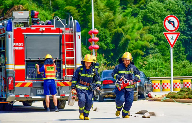 “實(shí)戰(zhàn)化”的演練也在公司已竣工驗(yàn)收的項(xiàng)目現(xiàn)場進(jìn)行。西北環(huán)線城建加油站正式投入運(yùn)營前,瀏發(fā)集團(tuán)組織了一場車輛自燃應(yīng)急演練,提高員工火災(zāi)逃生的自救技能。