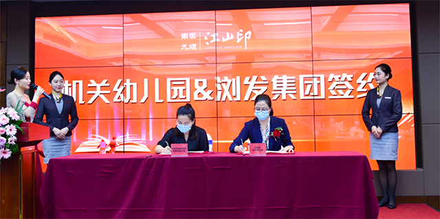 活動現場,市教育局與瀏發集團就江山印地塊機關幼兒園品牌授權進行簽約,雙方將在江山印項目合建兩所瀏發機關幼兒園。按照規劃,兩所幼兒園分別位于江山印項目上郡和11號地塊,分別設置12、15個班級,將按一級公辦性質幼兒園標準建設,傾力打造高品質幼兒園。