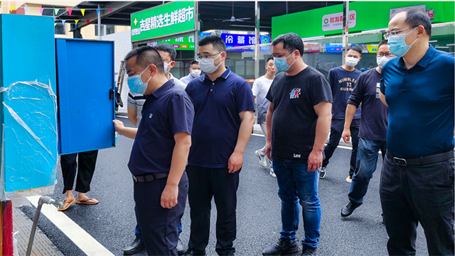 瀏發集團黨委副書記、總經理熊瑋帶隊檢查二組詳細了解市場當前運營及食品安全保障情況,重點檢查了市場內消防器材、消防栓是否在有效期內及使用情況,及時糾正占用消防通道等行為。熊瑋要求嚴抓農貿市場安全生產,為轄區居民營造安全、放心消費環境。
