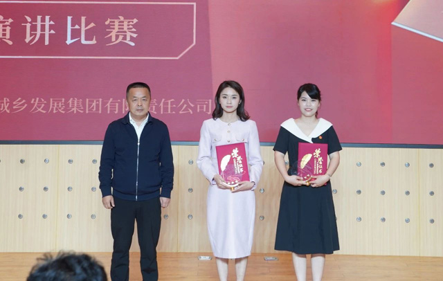瀏發集團黨委副書記、總經理熊瑋為二等獎獲獎選手吳迎、汪娜娜頒獎。