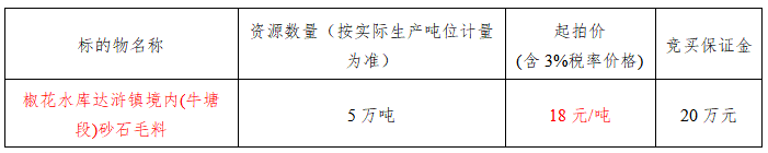 4.信息說明詳見長沙瀏河拍賣有限公司《拍賣規則》及《椒花水庫達滸境內(牛塘段)砂石毛料資源銷售合同》。