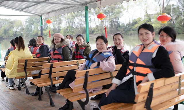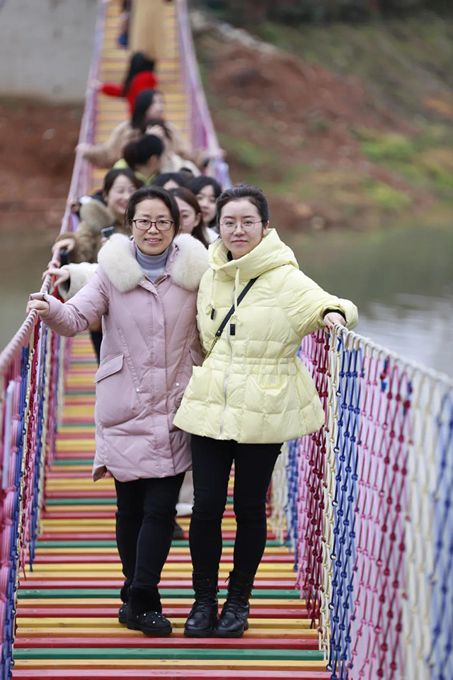 在瀏陽河第一灣景區,女同胞們乘船游湖,漫步玻璃橋,在輕松愉快的氛圍中拍下美照,盡享春光之美。