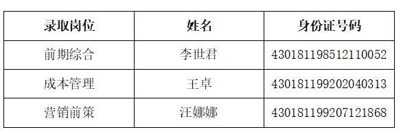湖南省瀏陽市恒遠建設開發有限公司2022年公開招聘合同制工作人員資格審查、筆試、面試、體檢、綜合考察工作均已經結束,現將擬錄用人員名單公示如下: