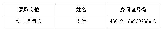 瀏陽市瀏發(fā)教育管理有限公司公開招聘幼兒園園長資格審查、筆試、面試、體檢、綜合考察工作均已經(jīng)結(jié)束,現(xiàn)將擬錄用人員名單公示如下: