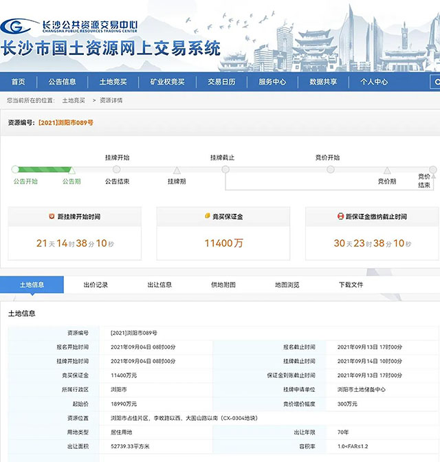 有意競買者可登錄長沙市國土資源交易網上交易系統(http://gtjy.csggzy.cn/trade-engine/trade/index)進行查詢。