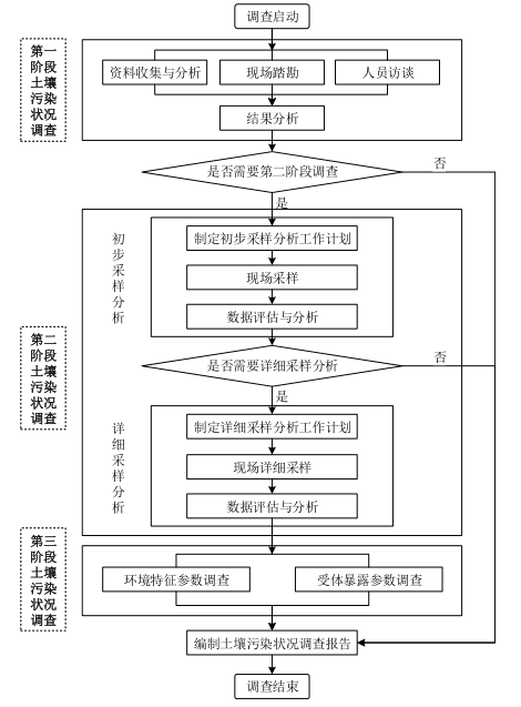 若只進行第一階段,其主要調(diào)查手段資料收集、現(xiàn)場踏勘、人員訪談,調(diào)查成果為《土壤污染狀況調(diào)查(第一階段)》;