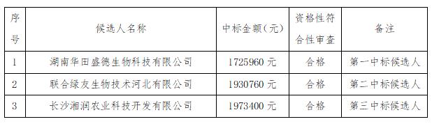 瀏陽市五環建設開發有限公司對農田地力提升進行公開采購,現將采購結果公告如下: