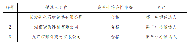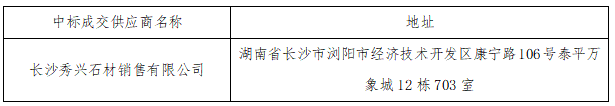 瀏陽市五環(huán)建設(shè)開發(fā)有限公司對石材進(jìn)行公開采購,現(xiàn)將采購結(jié)果公告如下: