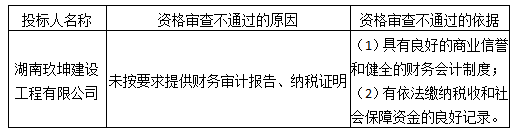 七、資格審查不通過(guò)的投標(biāo)供應(yīng)商名稱、原因和依據(jù)