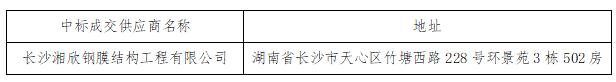 瀏陽市五環(huán)建設(shè)開發(fā)有限公司對膜結(jié)構(gòu)進行公開采購,現(xiàn)將采購結(jié)果公告如下: