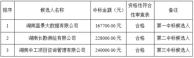 四、廢標情況說明:湖南泰宇科技有限公司和湖南蘭途測繪有限公司長沙分公司未按招標文件要求提供投標文件電子檔,湖南維創測繪有限公司未按招標文件要求提供被授權人在本單位近三個月內任意一個月的社保證明材料,故以上三家投標單位作廢標處理。
