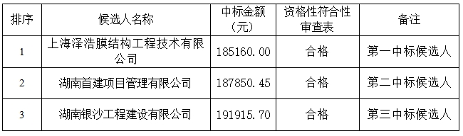 受瀏陽市文化旅游產業發展有限責任公司的委托,本代理機構對白沙路健身中心電動伸縮式遮陽棚采購項目進行公開招標采購,現將采購結果公告如下:
