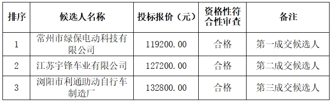 四、被否決投標的投標供應商名單:江蘇速利達機車有限公司。