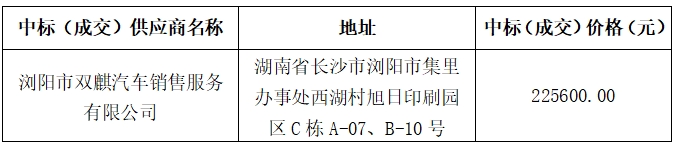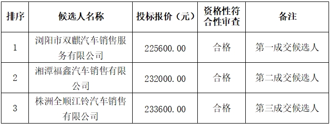 受湖南株樹橋城市運營服務有限責任公司的委托,湖南潤平項目管理有限公司對皮卡車、窄體雙排欄板車采購進行招標。現將采購結果公告如下: