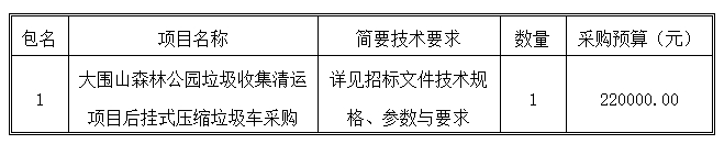 大圍山森林公園垃圾收集清運項目后掛式壓縮垃圾車采購