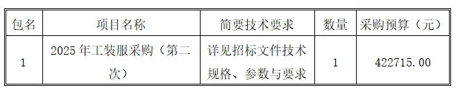 一、采購項目名稱:2025年工裝服采購(第二次)